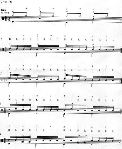 Ich bemerke beim dritten "Diddle", dass ich koordinativ langsam ans Limit zu kommen scheine. Tom meint: "Das machen auch viele falsch. Sie sagen sich: ´Ok - jetzt übe ich´, vergraben sich und üben dann zu lange, strengen sich enorm an und verkrampfen dabei. Da machst du besser mal eine halbe Stunde Break, trinkst einen Kaffee und versuchst es dann noch einmal." Immerhin, der Unterricht erlaubt mir, neben dem Einüben der Schlagabfolgen auch immer wieder an mir selbst zu arbeiten. Dinge, auf die Tom mich hingewiesen hat, wie Rücken gerade, Peitschenhieb-Schläge, Fuss hält Kontakt zum Pedal, Finger am Holz usw. werden mir immer wieder bewusst, wenn ich auf den Beckenrand haue, das Timing mit dem Floor oder dem Hat versaue oder wenn ich mich plötzlich nicht mehr ganz wohl fühle. Schlagzeug Spielen, da hat Tom vollkommen recht, darf nie wirkliche Anstrengung sein, sonst tönt es auch verkrampft. Das höre selbst ich, der Laie, am MiniDisc heraus.