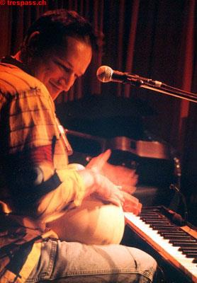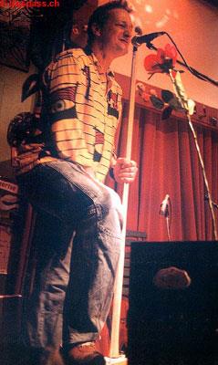 Umformuliert lautete meine erste Frage im Talk nach dem Gig also, was denn Adi W. und Resli B. musikalisch verbinde. Adi überlegt erst mal: "Ich glaube, das sind zwei recht weit entfernte Welten. Irgendwie sehe ich mich, seit ich dies hier betreibe, aber sowieso als Musikant, der mit jedem zusammen spielen können muss. Man sucht solche Begegnungen dann auch und Resli war mir immer im Kopf, weil er verschiedene Seiten hat und so viele Instrumente spielt." Im Konzert hatte Adi noch über den Jahrgang von Reslis Solo Boum! gescherzt: "1985? 1974?" Ich konfrontiere Resli nun damit, dass ich selbst ebenfalls keine Ahnung hätte und auch sonst nicht so auf dem Laufenden sei, was den Res Burri angeht. Er lacht: "1991 wars... Und dann gleich acht Jahre Ochsners, und auch Les Trois Suisses haben übrigens in dieser Zeit schon begonnen. Das passierte damals alles ziemlich zeitgleich. Es hat sich dann bald zwangsläufig auf Patent Ochsner fokussiert, weil diese Band bei zehn Mitgliedern halt schon eine Exklusivität fordern muss. Da kann nicht noch jeder private Projekte nebenher betreiben. Mir hat das sehr gefallen, ich hatte ja vorher mehr ´umegrümmschelet´ und war dann mit einem Mal in grossen Sälen, an Festivals. Das war sehr eindrücklich, hat dann aber nach acht Jahren doch begonnen, sich zu erschöpfen. Danach habe ich mich wieder mehr für kleinere Sachen zu interessieren begonnen, wollte etwas aufbauen und weil Les Trois Suisses über die Jahre immer wieder vertröstet worden war, habe ich nach dem Ausstieg bei Ochsners 2000 dort weiter gemacht."